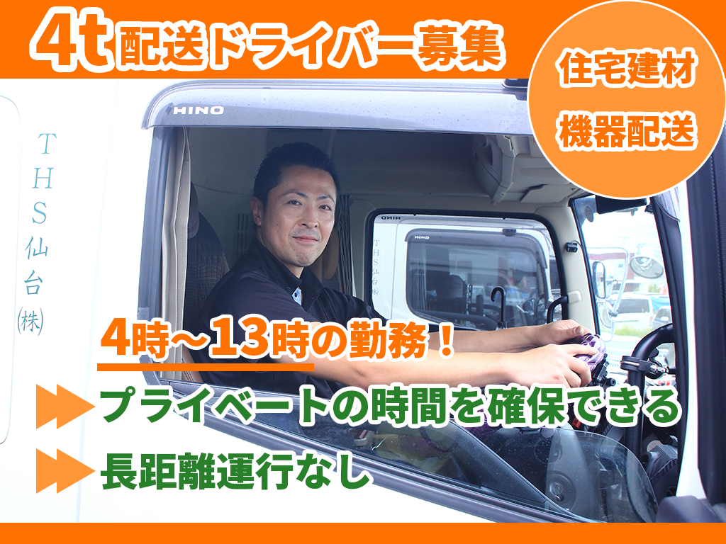 4tトラックにて住宅用建材と住宅設備機器のルート配送になります。